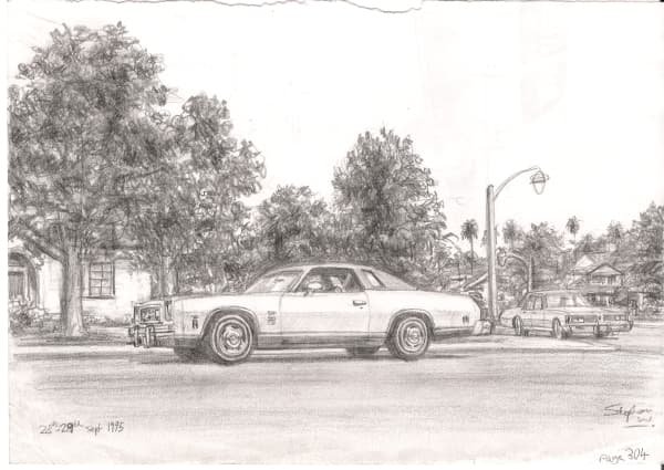 Original Drawing of 1974 Chevrolet Laguna measuring 210 x 150 mm, created and hand drawn by the artist.
