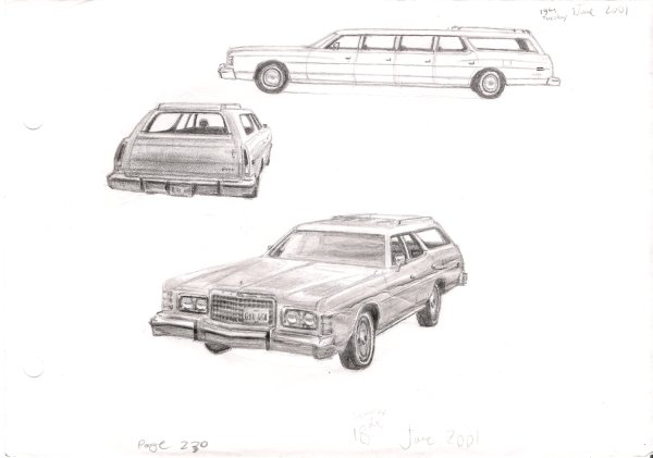 Original Drawing of 1975-78 Ford LTD Station Wagon measuring 210 x 148 mm, created and hand drawn by the artist.