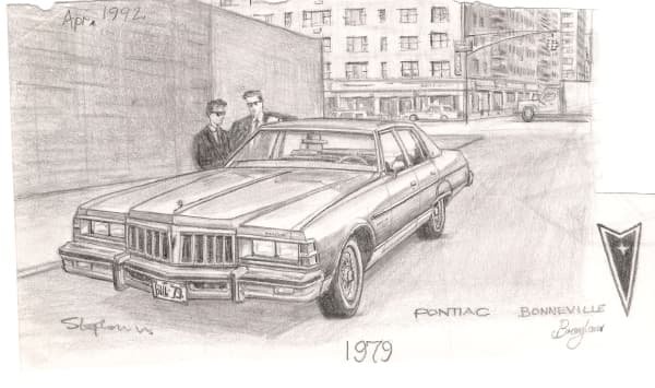 Original Drawing of 1979 Pontiac Boneville measuring 179 x 99 mm, created and hand drawn by the artist.