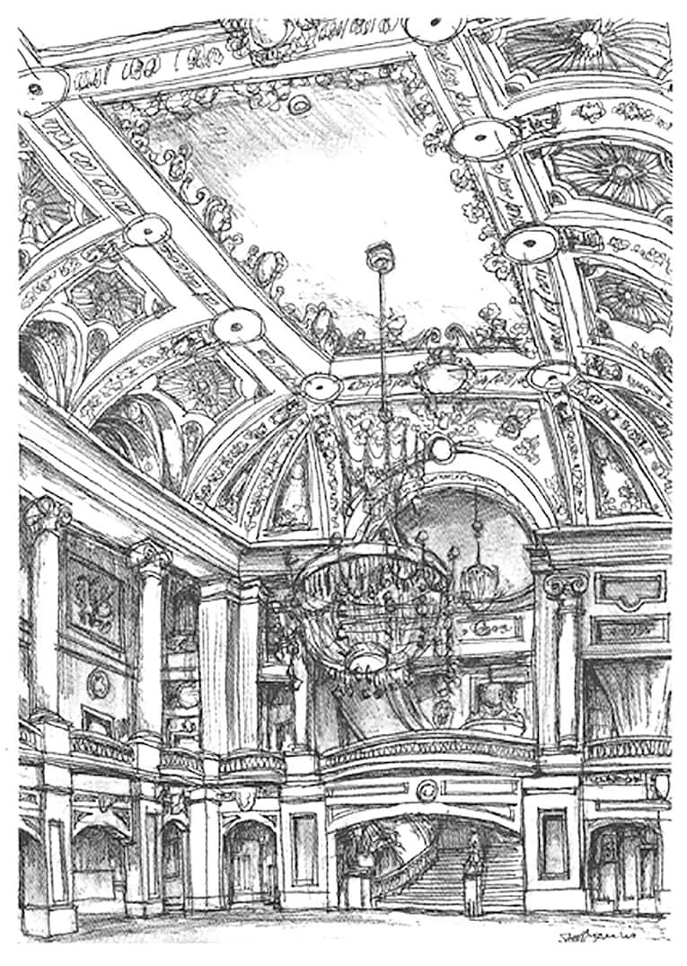 Drawing of A lavish interior at the Chicago Theater