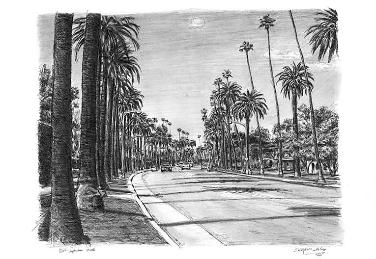 Drawing of Beverly Drive in Beverly Hills