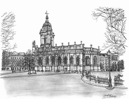 Original Drawing of Cathedral of St Philip 1997 measuring 594 x 420mm (A2), created and hand drawn by the artist.