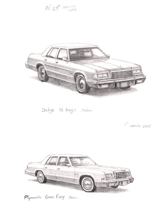 Original Drawing of Dodge St Regis Sedan measuring 149 x 210mm, created and hand drawn by the artist.