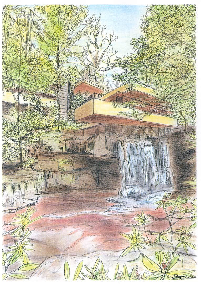 Drawing of Fallingwater – Bear Run – Pennsylvania