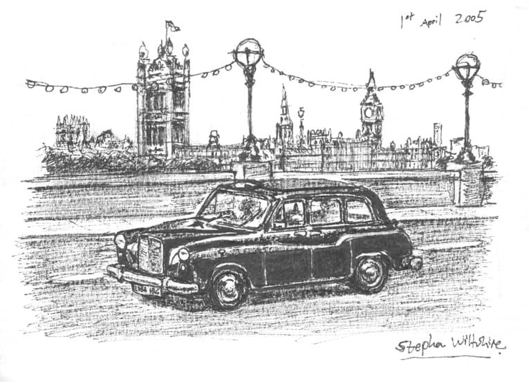Original Drawing of London Taxi measuring 210 x 150mm (A5), created and hand drawn by the artist.