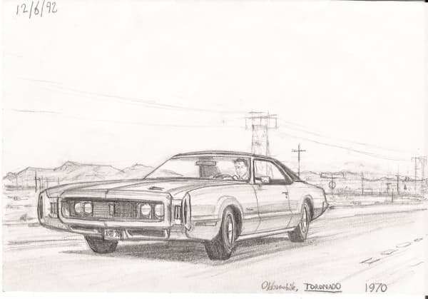 Original Drawing of Oldsmobile Toronado measuring 148 x 102 mm, created and hand drawn by the artist.