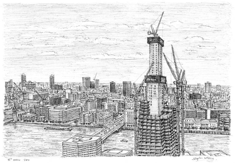 Original Drawing of Shard measuring 594 x 420mm (A2), created and hand drawn by the artist.