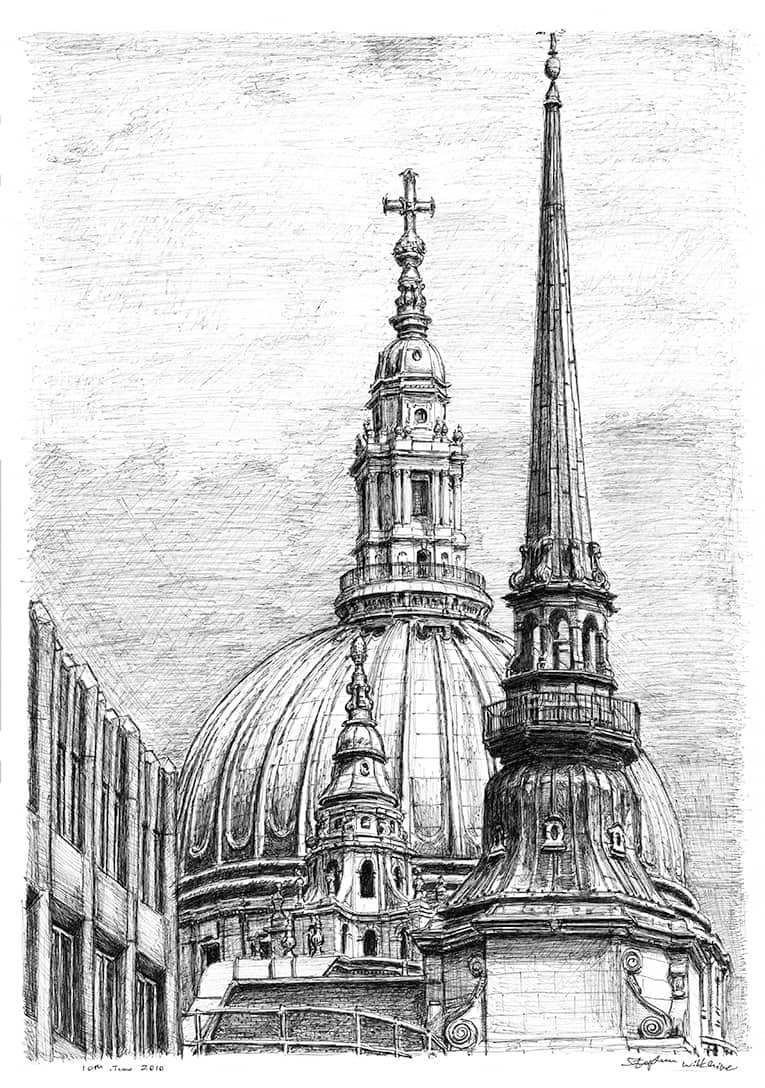 Original Drawing of The Dome of St Pauls Cathedral measuring 297 x 420mm (A3), created and hand drawn by the artist.