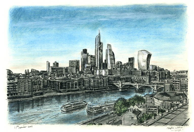 Buy the Framed Artwork of the Original London 2012 Drawing – Framed Original Art – Drawings of Urban Landmarks and Cities