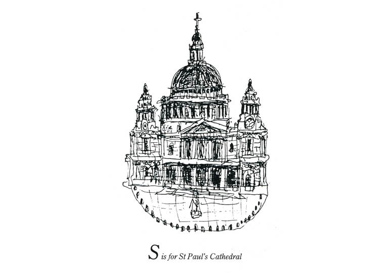 Original Drawing of London Alphabet – S for St Pauls Cathedral measuring 210 x 150mm, created and hand drawn by the artist.