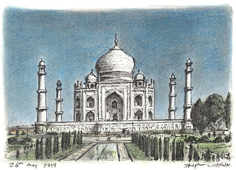 Open Edition Prints of the Original Drawing Taj Mahal measuring 210 x 148mm, created and hand drawn by the artist.