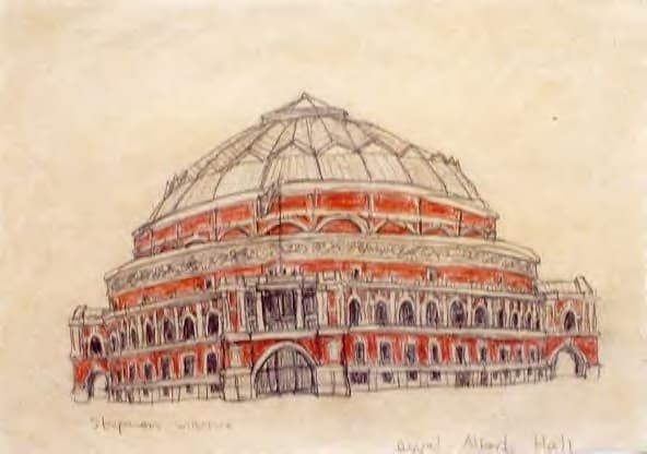 Drawing of Royal Albert Hall, London 1986 measuring 420 x 297 mm (A3), created and hand drawn by the artist.